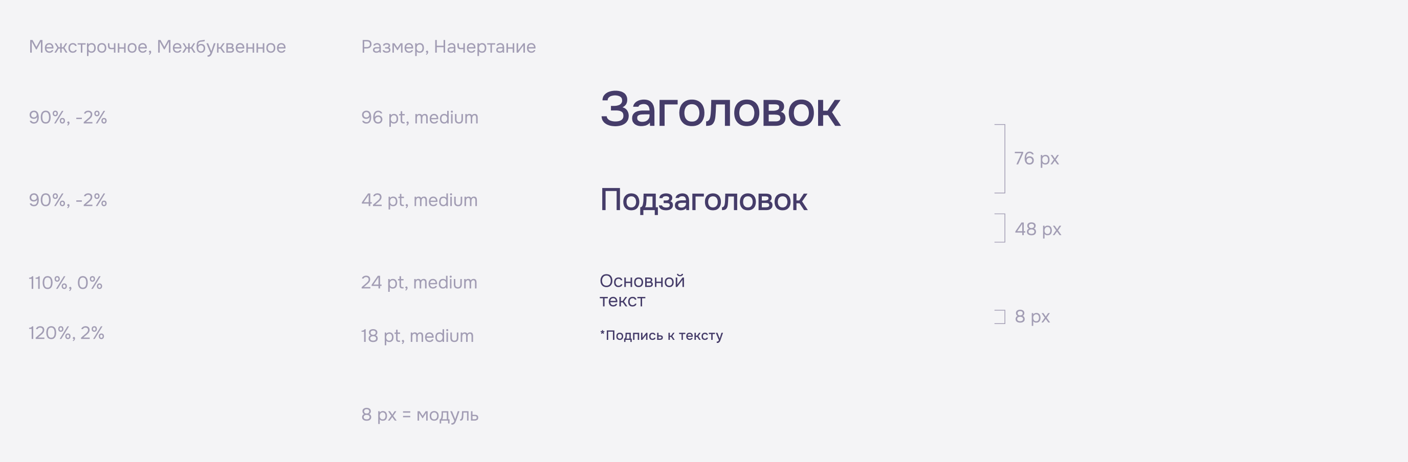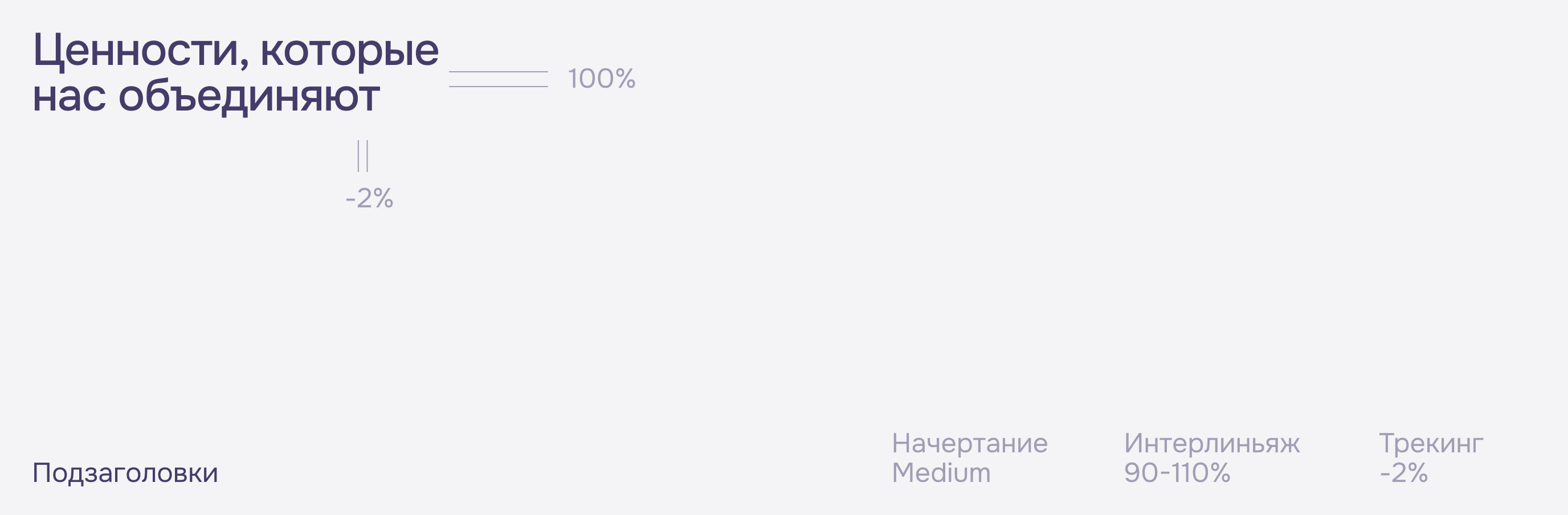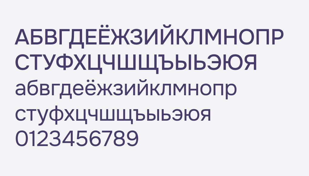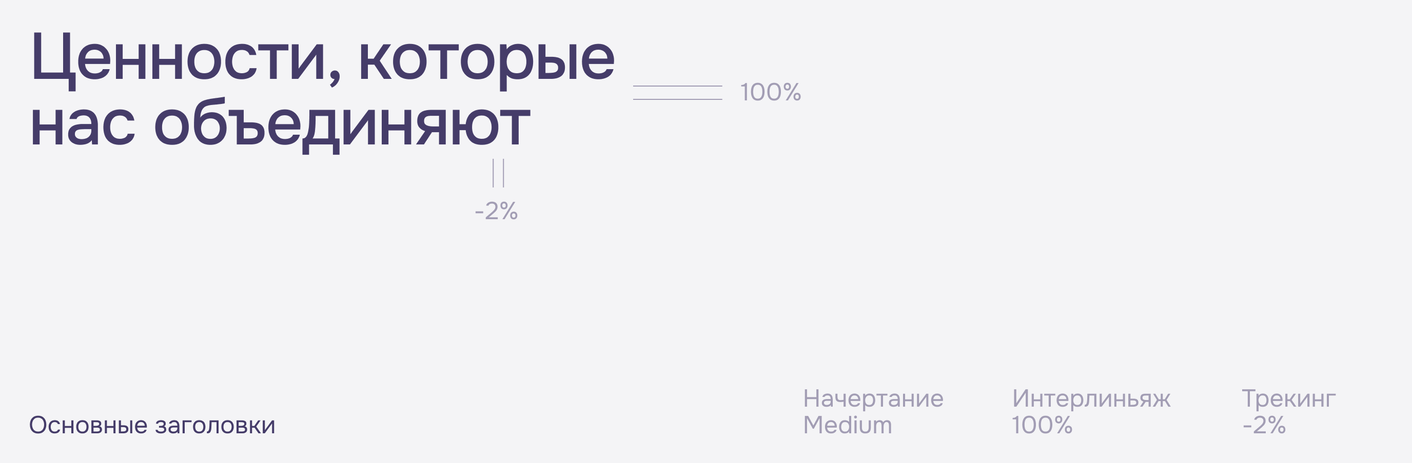 Начертание для заголовков — Medium. Для наборного текста — Regular. Другие начертания используются ограниченно и не применяются для построения иерархии.