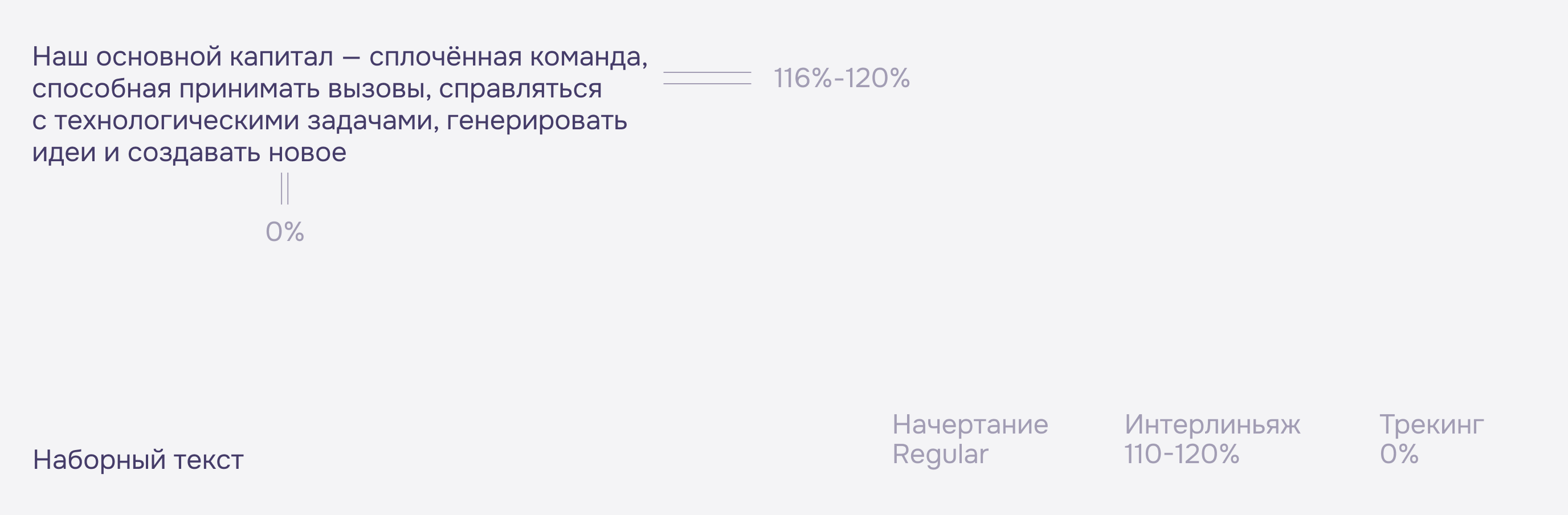 Выделение второстепенного текста и снижение визуального акцента выполняется за счёт прозрачности 50%, без изменения цвета шрифта. Использование дополнительных цветов для выделения текста не допускается.
